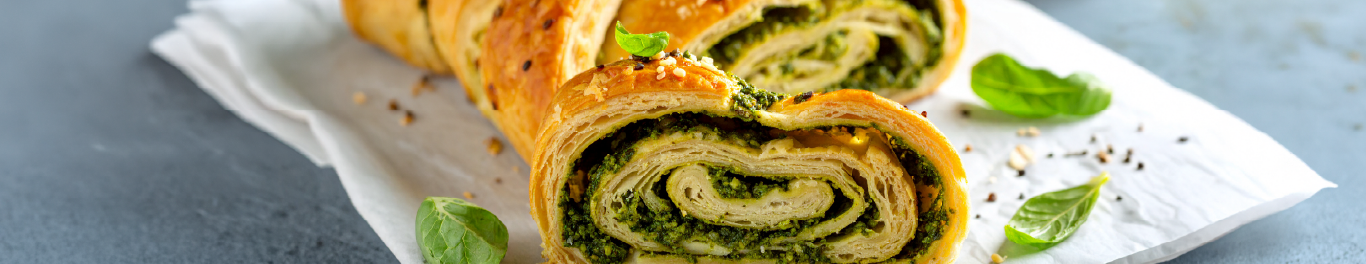 Untar pesto por toda la superficie de la masa con una cuchara o mesquino.