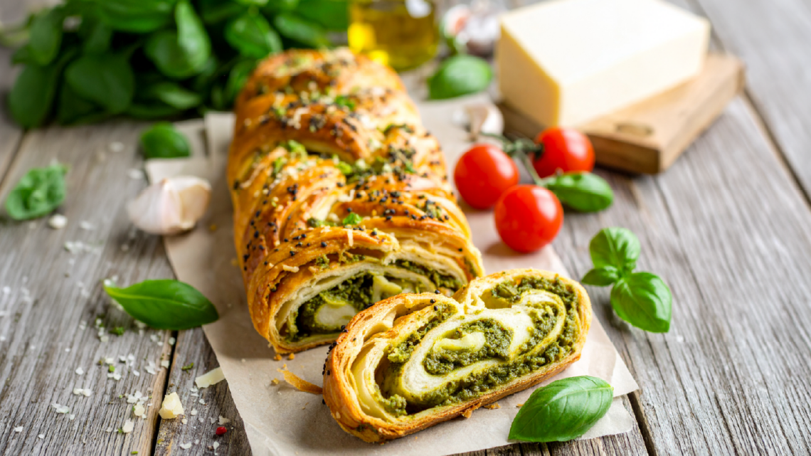 Untar pesto por toda la superficie de la masa con una cuchara o mesquino.